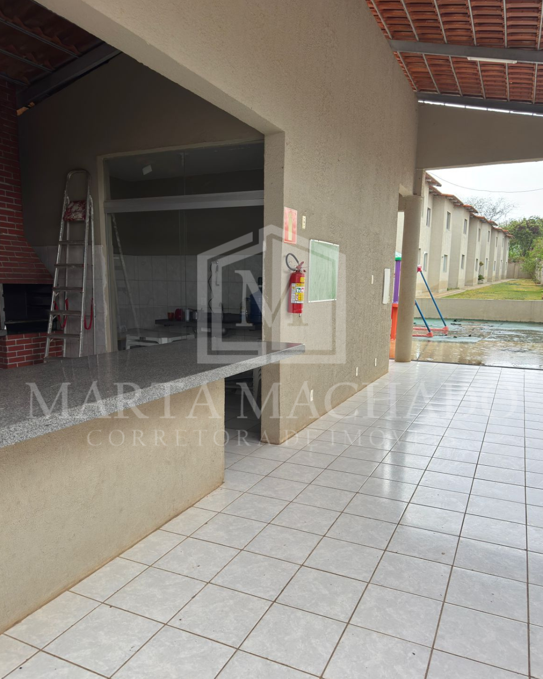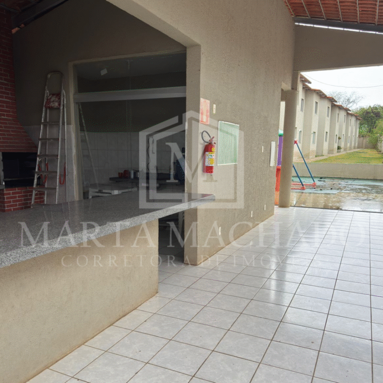 O residencial dispõe de uma estrutura completa para lazer e convivência, com churrasqueira, piscina e playground.
